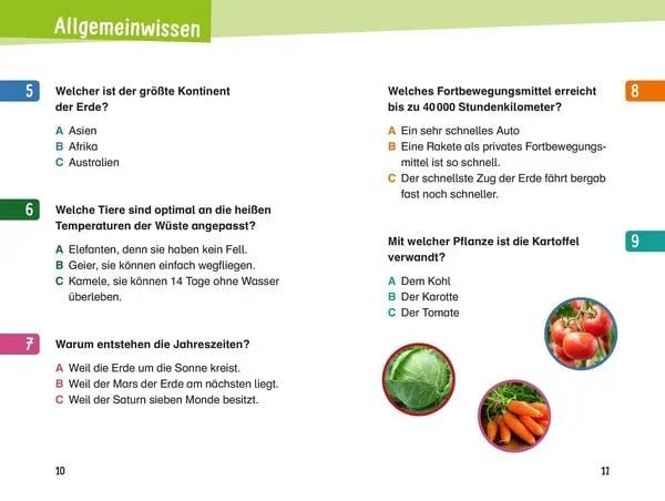 Welchen Doppellaut kannst du auch essen? Wie viele Sprachen gibt es? Welche beiden Zahlen versteht ein Computer? Warum sind Apfelmännchen kein Obst? Mit welcher Redewendung sparst du zu Hause Energie? Warum entstehen die Jahreszeiten? Mit fesselnden Sachthemen und faszinierenden Deutsch-, Mathe- und Englischfragen testen kleine Schlaufüchse ihr Grundschulwissen. 133 knifflige Quizfragen und ihre spannenden Antworten regen zum Knobeln und Nachdenken an. Genialer Rätselspaß, an dem nicht nur allein, sondern auch zu zweit, mit Freunden, Geschwistern, Eltern oder Großeltern getüftelt wird!