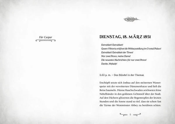 London, 1851. Joshua Jackelby, ein cleverer Zeitungsjunge, träumt von einem eigenen Pferd und einer Zukunft als königlicher Bote. Als er einen verletzten Hundewelpen aus der Themse rettet, ahnt er nicht, dass dies sein Leben für immer verändern wird. Zusammen mit seinen Freunden und seiner treuen Hündin Hazel stellt sich Josh den düsteren Schatten Londons: einer Welt aus Straßenbanden, Schurken und verborgenen Geheimnissen. Im Wettlauf gegen die Zeit jagt er Dieben nach, die einem genialen Erfinder seine Pläne für eine bahnbrechende Flugmaschine gestohlen haben – und deckt dabei eine Verschwörung auf, die bis in die höchsten Kreise der Gesellschaft reicht. Und damit geraten Josh und seine Freunde in Lebensgefahr!