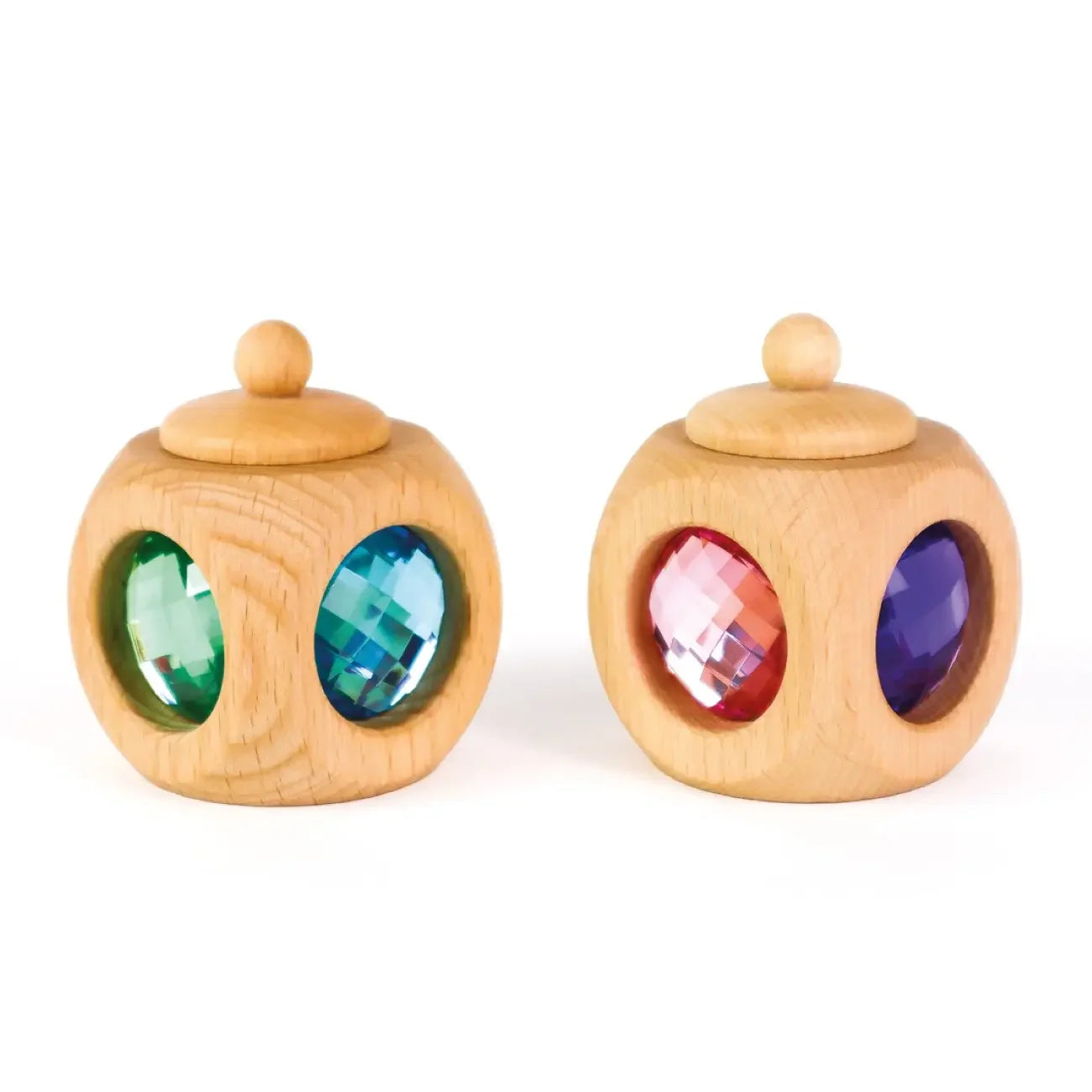 Mit ihren zarten Pastelltönen und dem sanften Leuchten der Funkelsteine wirkt diese kleine Holzdose wie ein Schmuckstück aus einer anderen Welt. Der drehbare Deckel lässt sich von Kinderhänden mühelos öffnen und schließen – immer wieder, als gäbe es jedes Mal ein neues Geheimnis zu entdecken.