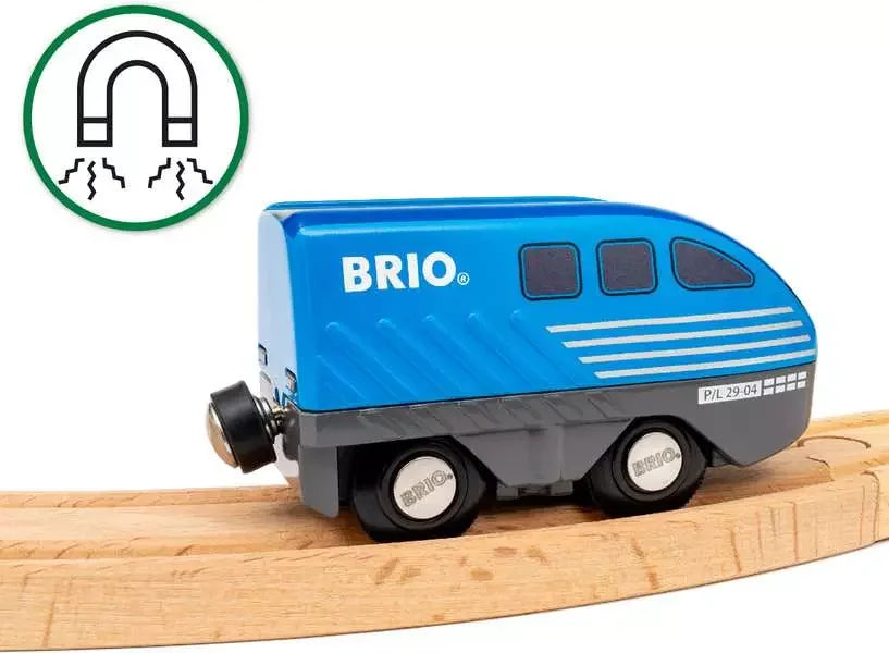 Die bewährten BRIO Magneten sorgen dafür, dass sich die Lok problemlos mit allen anderen BRIO Waggons und Loks verbinden lässt. So entstehen individuelle Zugkompositionen, die je nach Laune und Fantasie immer wieder neu zusammengestellt werden können. Die Lok kann allein fahren oder als kraftvoller Zugführer mehrere Waggons hinter sich herziehen.
