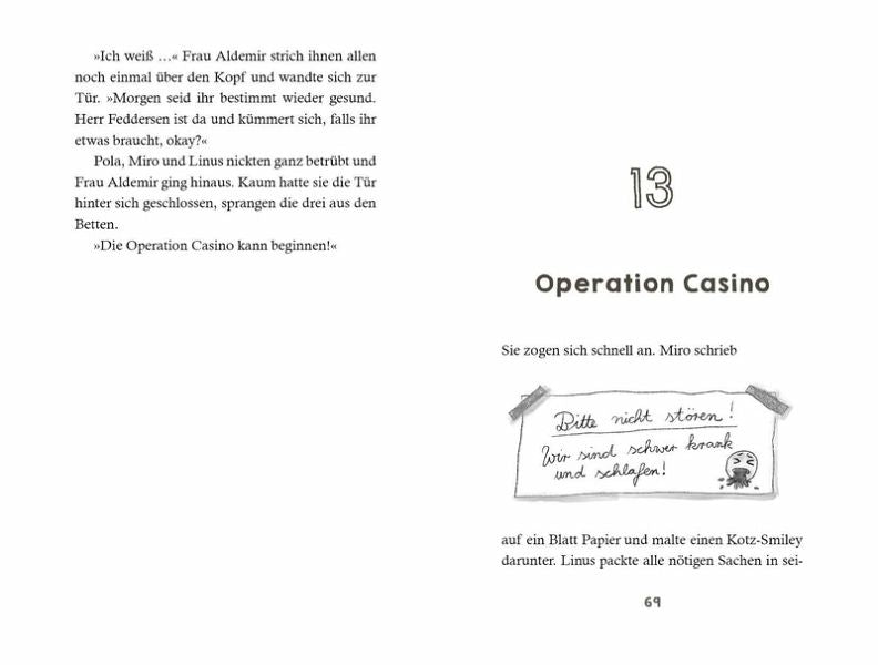 Miro, Pola und Linus sind die Schurkenschnapp-AG. Und endlich geht es nun auf Klassenfahrt. Mit Heimwehtrunk und einem Koffer voller Spezialausrüstung. Fehlt nur noch ein neuer Fall. Der kommt prompt: Im Casino gleich neben ihrer Unterkunft passieren seltsame Dinge. Ein Goldschlips hat eine Glückssträhne, eine Türsteherin macht dicht und im Keller verschwinden die Tageseinnahmen. Zum Glück sind Miro, Pola und Linus auf alles vorbereitet - und pokern hoch!