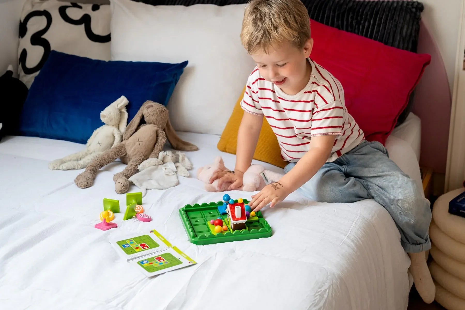 60 Herausforderungen in unterschiedlichen Schwierigkeitsstufen sorgen dafür, dass das Spiel mit den Kindern wächst. Was heute noch knifflig ist, wird morgen souverän gelöst. Und das Strahlen nach einer gelungenen Lösung bleibt immer gleich strahlend.