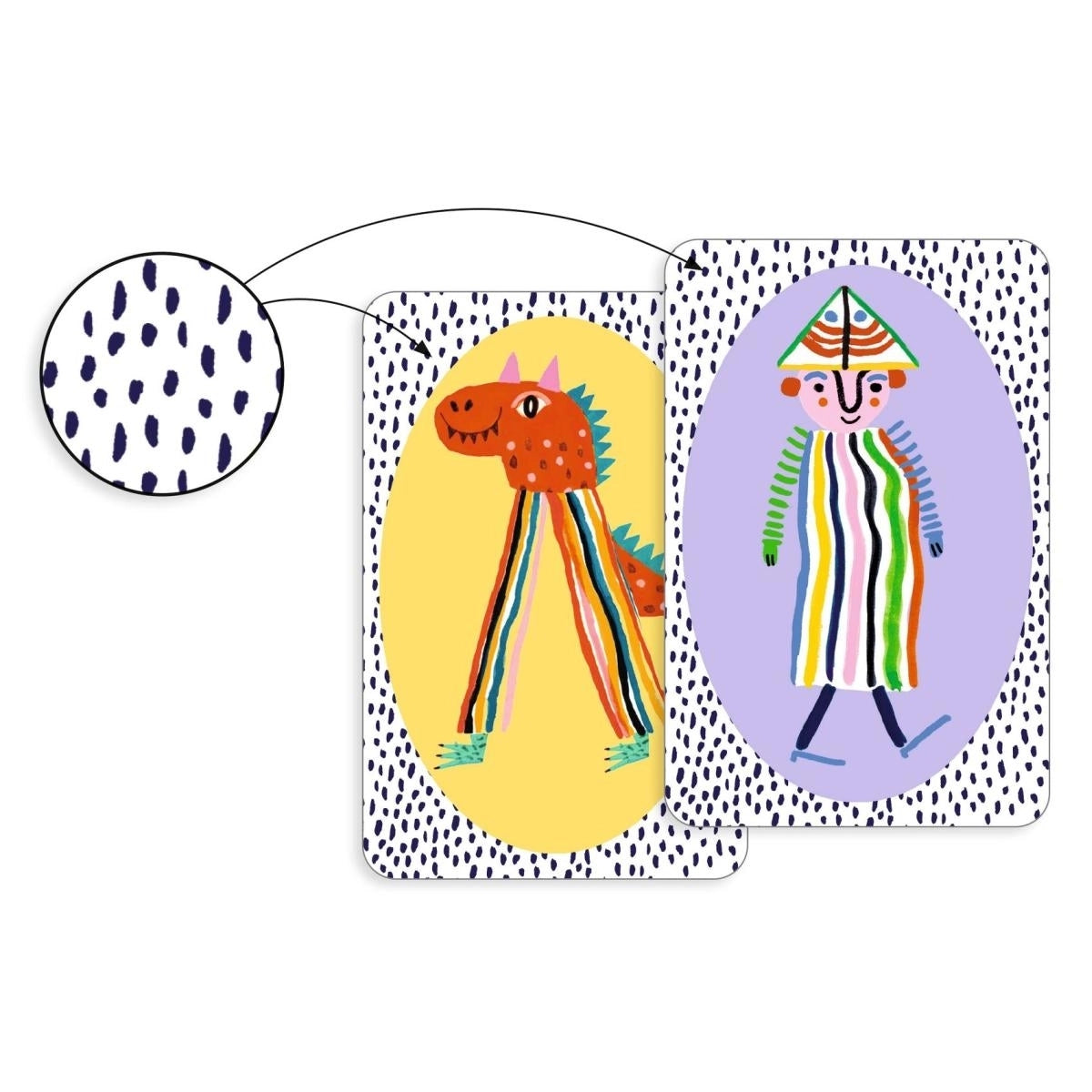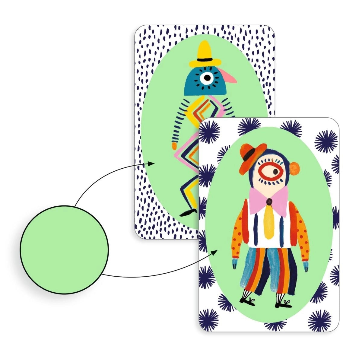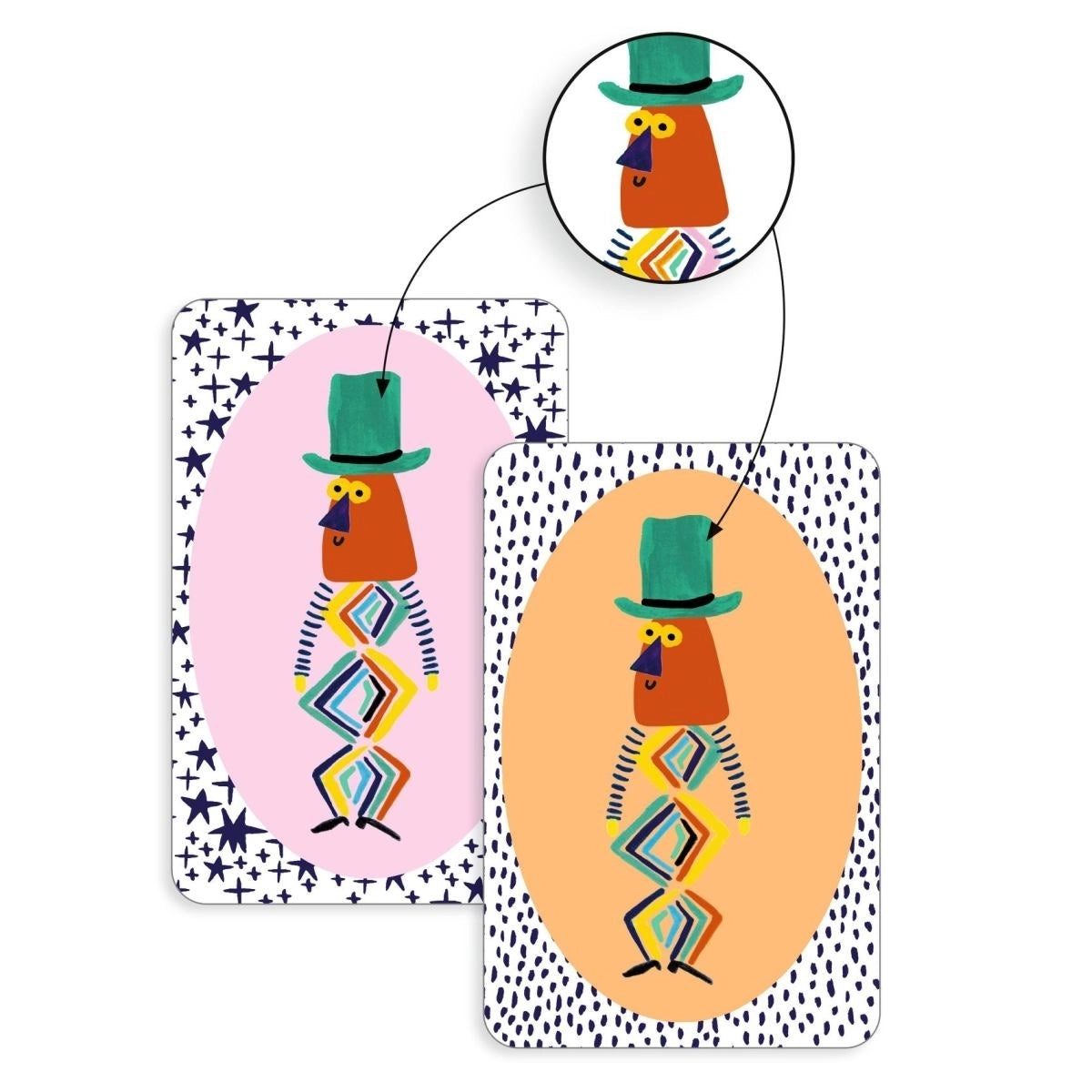 Die skurrilen Illustrationen und schrägen Figuren geben dem Spiel seinen ganz eigenen Charakter – kein aufgeräumtes Design von der Stange, sondern etwas, das Kinder und Erwachsene gleichermaßen anlacht. Die 72 robusten Karten halten auch häufiges Mischen gut aus, und das handliche Format passt locker in jeden Rucksack, jede Handtasche, jeden Urlaub.
