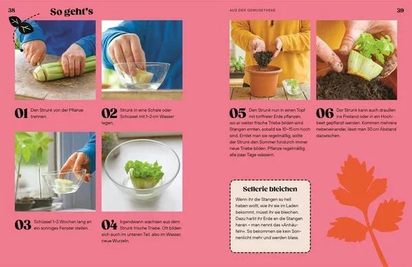 Stellt euch vor, ihr schneidet eine Tomate aus dem Supermarkt auf – und aus den Scheiben wächst schon bald eine eigene Pflanze. Regrowing macht’s möglich! Dieses inspirierende Urban Gardening Buch zeigt, wie man Gemüse nachwachsen lassen , gekauften Ingwer eintopfen oder Kräuter wie Minze auf einer Fensterbank ziehen kann – ganz ohne Garten. Mit 40 Hacks verwandelt ihr Gemüsereste, Obstkerne oder sogar Popcornmais in frisches Grün. Ob Staudensellerie, Frühlingszwiebeln oder Kamille aus Teebeuteln: Mit anschaulichen Schritt-für-Schritt-Fotos lernt ihr, wie leicht es ist, aus Küchenabfällen neue Pflanzen zu ziehen . So wird Nachhaltigkeit im Alltag bunt, kreativ und lecker.