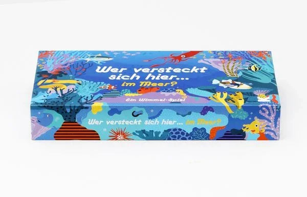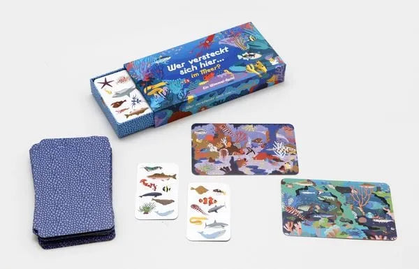 „Wer versteckt sich hier … im Meer?“ ist ein Wimmelspiel, das den Blick schärft und die Sinne wachhält. Auf den Meeresszenen-Karten wimmelt es nur so vor Leben, und die Tierkarten stehen dem in nichts nach. Die Illustrationen sind liebevoll und detailreich, sodass das Suchen selbst schon eine Freude ist – auch wenn man gerade verliert.