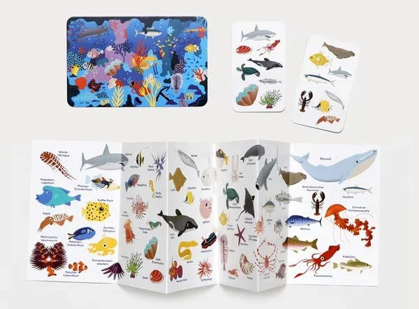 Manchmal liegt das Spannendste genau da, wo man am wenigsten hinschaut. Zwischen Quallen und Krabben, Seepferdchen und Tintenfischen versteckt sich immer genau ein Tier, das auf beiden Karten gleichzeitig auftaucht – und wer es als Erstes entdeckt, hat gewonnen. Klingt einfach. Ist es nicht.